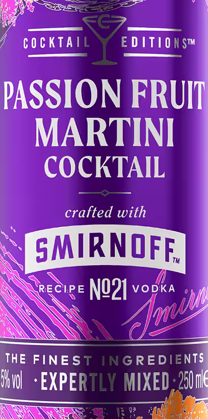 Elevate your choice of drink with the Smirnoff Passion Fruit Martini cocktail. Pour over ice, or enjoy chilled.