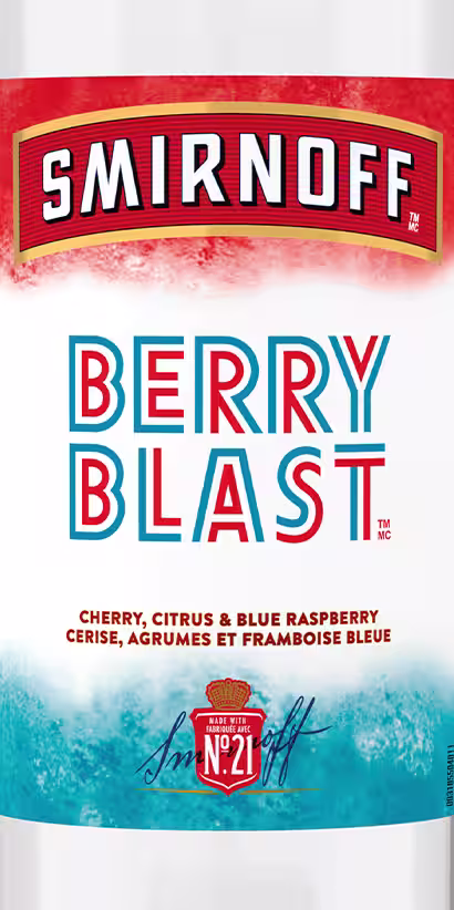 Savourez le goût fruité de notre Smirnoff Berry Blast. Infusée d'arômes de cerise, d'agrumes et de framboise bleue, cette boisson est parfaite sur glace ou dans un cocktail.